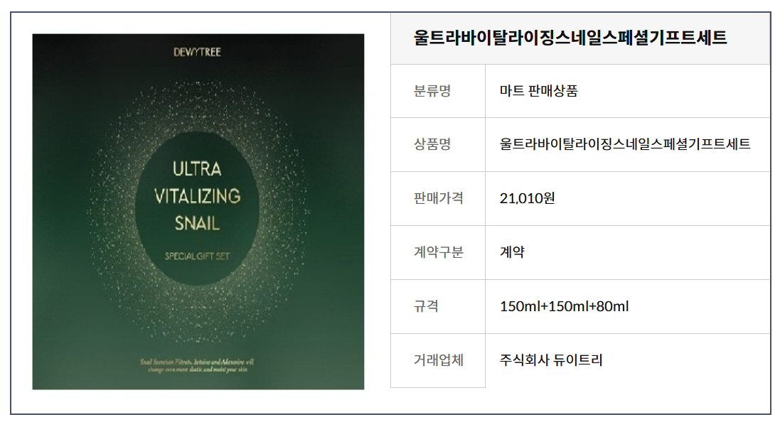 현재 별점 4.8점, 리뷰 180개를 가진 듀이트리 울트라 바이탈라이징 스네일 스페셜 기프트 3종 세트 크림 에센스 에멀전, 3개! 지금 쿠팡에서 더 저렴하고 다양한 기초세트 제품들을 확인해보세요.