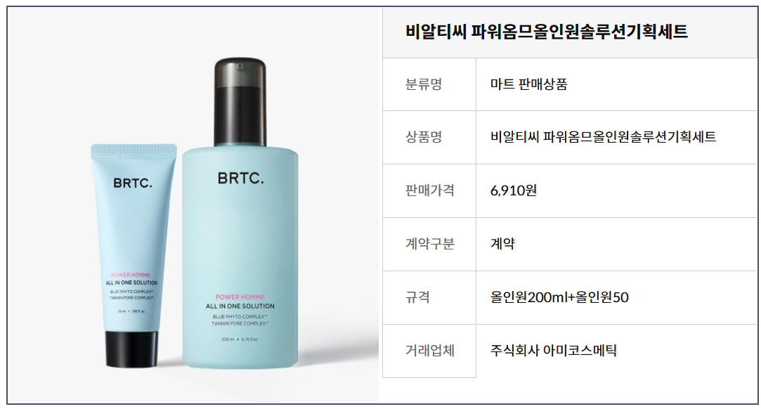 비알티씨 파워 옴므 올인원 솔루션 기획세트 200ml+50ml, 200ml, 1개 - 올인원 | 쿠팡